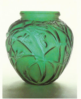 Pictured above right is Sauterelles, (grasshoppers) vase from the 1920's, 10 inches, made in a variety of colors and in both clear and frosted glass.